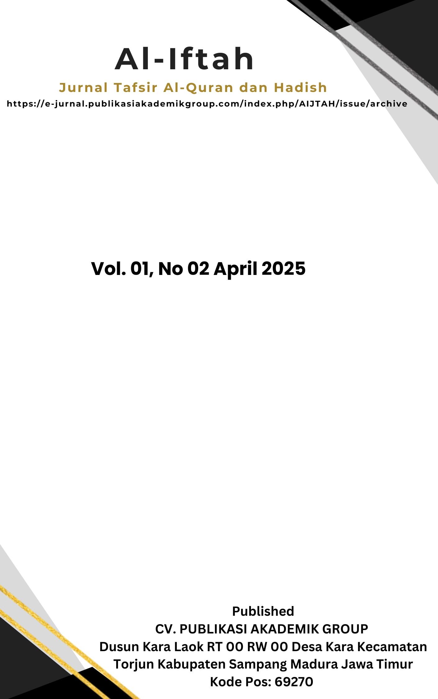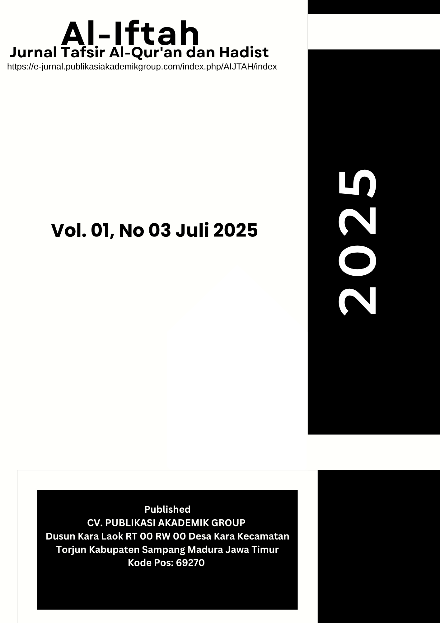 Vol. 1 No. 3 (2025)Al-Iftah: Jurnal Tafsir al-Qur'an dan Hadith provides scientific articles developed in attending through the article publications, original research reports, reviews, and scientific commentaries in Islamic Studies. Al-Iftah: Jurnal Tafsir al-Qur'an dan Hadith encompasses research papers from researcher, academics, and practitioners. In particular, papers which consider the following general topics are invited.